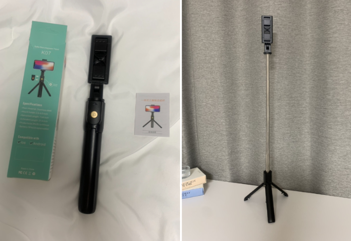 다이소꺼는 지지가 잘 안 돼서 휙 쓰러지고 손잡이 당기니깐 뭔가 플라스틱 부서지는 소리도 났는데, 이거는 묵직하고 튼튼한 게 휴대폰 올려놔도 바닥에 지지가 잘 되었습니다.