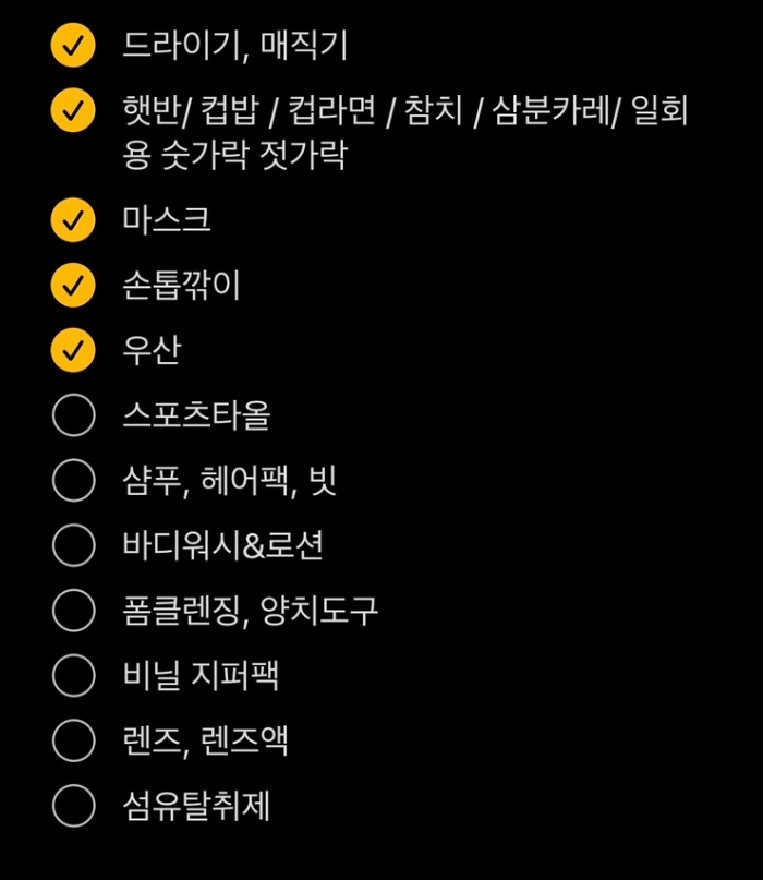 저는 가성비 천국 알리익스프레스와 다이소를 최대한 활용해서 장만했습니다. 먼저 폰 메모장에 준비물 체크 리스트를 작성해 놓고 하나하나 준비했어요.